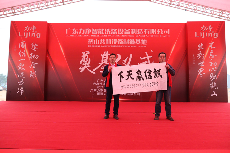 1月20日,位于鶴山工業(yè)城的廣東力凈智能洗滌設(shè)備有限公司設(shè)備制造基地擂響戰(zhàn)鼓,隆重舉行奠基儀式。